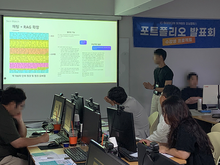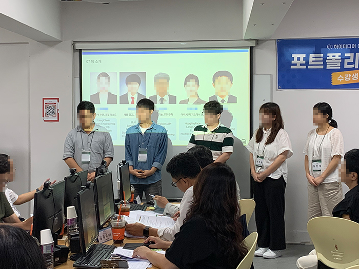[강남] '심화_생성형 AI활용 인재양성' 부트캠프 과정 8기 프로젝트 발표회 안녕하세요.하이미디어 아카데미 강남캠퍼스에서'심화_생성형 AI활용 인재양성' 과정 8기 프로젝트 발표회가 있었습니다. 하이미디어 아카데미는 앞으로도 여러분의 취업을 위해 최선을 다하겠습니다. 감사합니다.