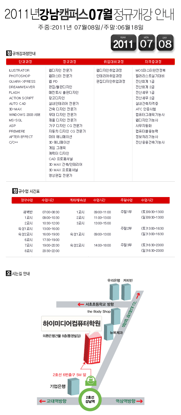 [정규개강] 2011년 7월 정규개강안내