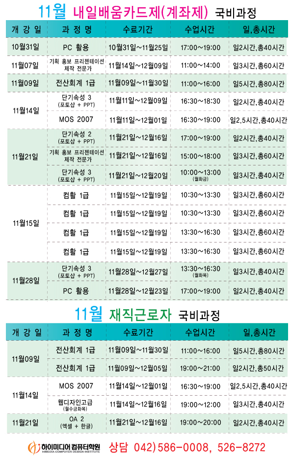 [정규개강]11월 개강일정입니다.(대전캠퍼스)