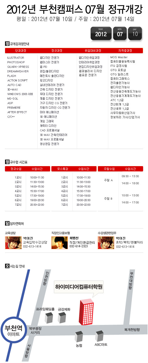 [정규개강] 2012년 07월 부천캠퍼스 개강안내