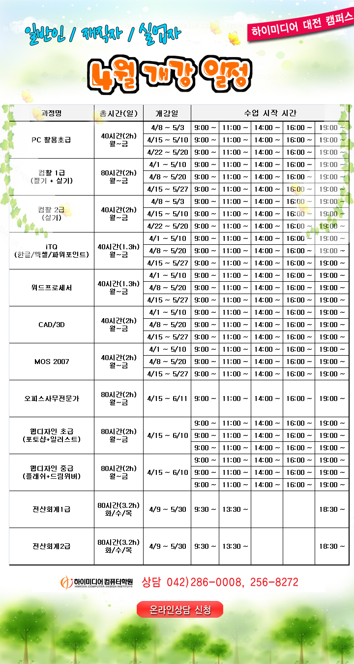[정규개강]4월 강의 일정 안내(대전캠퍼스)
