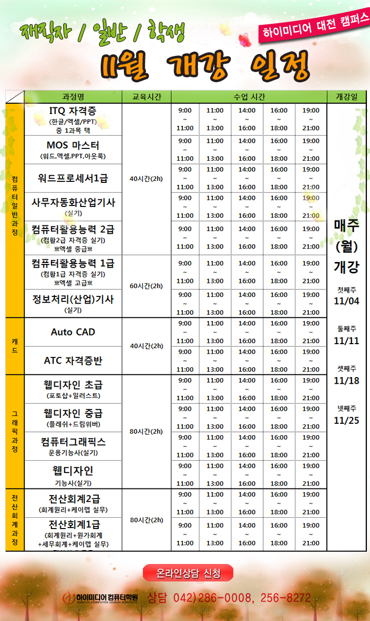 [정규개강]11월 정규강의 일정 안내입니다.